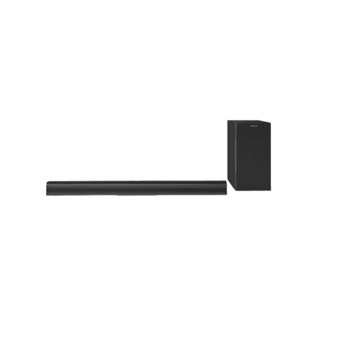 The ultimate audio experience with Philips TAB4319 Soundbar. Featuring 2.1 channels, 80W max output, and a wired subwoofer for deep bass. Enjoy seamless connections with multiple options and tailor your sound with 3 EQ modes for any setup.